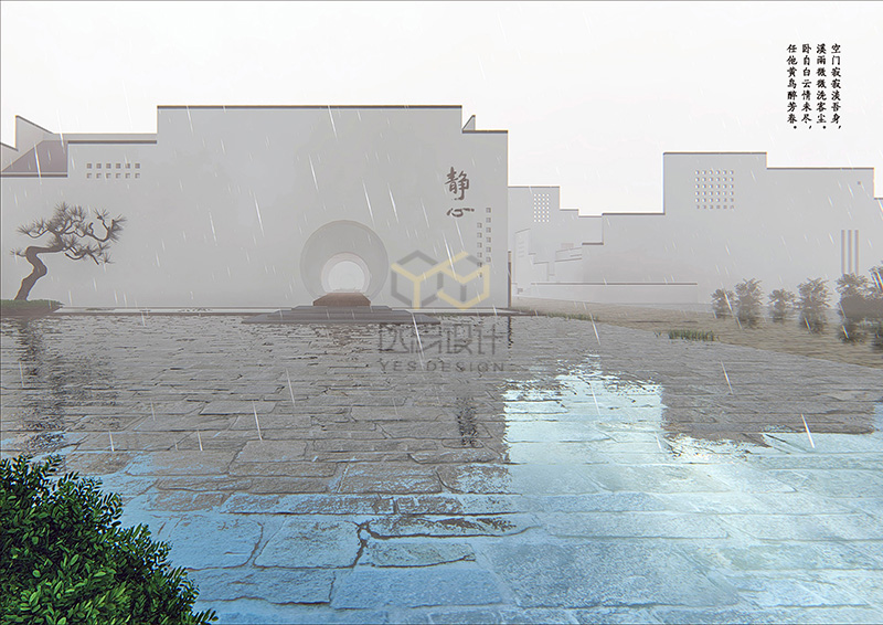 本方案是設(shè)在泰寧的一所佛法禪修中心,總占地面積20畝有余,建筑面積2萬多平米。甲方提出的設(shè)計要求為六個詞:“無我、無相、無限、出世、寂靜、超然”,集靜養(yǎng)、共修、參禪、弘法多種功能于一體的建筑空間。我方設(shè)計團(tuán)隊經(jīng)過深入的理解,以極簡的手法,擯棄繁雜,用大面積白墻和簡化的線條,呈現(xiàn)出極簡的徽派建筑風(fēng)味,并運用藝術(shù)的抽象處理,形象展示佛家的出世、寂靜、超然。方案創(chuàng)作中通過對實地風(fēng)貌、自然人文的考查及資料收集,精準(zhǔn)的展示出實地光影效果和自然風(fēng)情,本案的每一張圖紙均配有詩詞文案,通過雨、晴、風(fēng)、雪等場景的模擬,刻畫出建筑未來與自然交匯的意境。