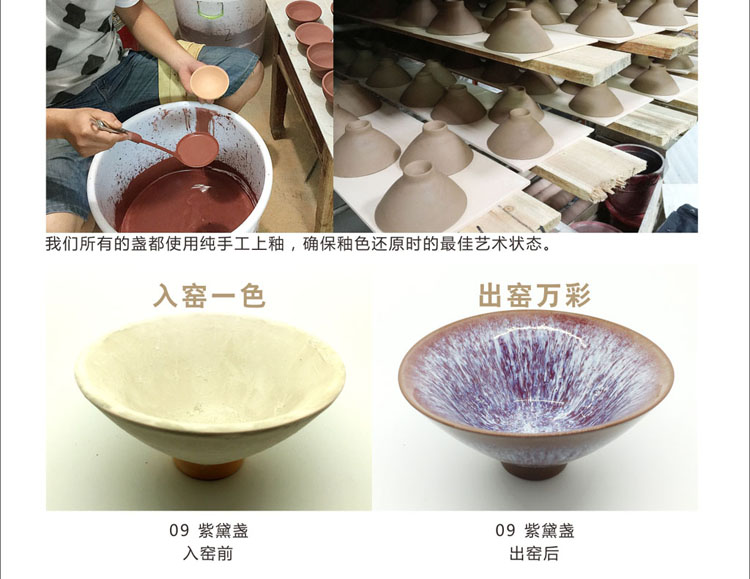 鈞窯始于唐代,興于北宋,河南禹州的鈞窖是當時最為流行的工藝,百年間自北向南,不斷地出現(xiàn)了數(shù)以萬計的鈞窖,傳至福建,由于當?shù)赝临|(zhì)、釉材、文化、審美的不同,慢慢的大家開始把它的工藝稱為“均窖”,均瓷與福建的茶文化相融合,產(chǎn)生了“盞”。古均瓷使用天然釉,入窖后能生變,變化不定,所以鈞瓷也稱“入窯一色,出窯萬彩”,成品各個優(yōu)美異常。千百年來,是文人墨客們最喜愛和收藏品。